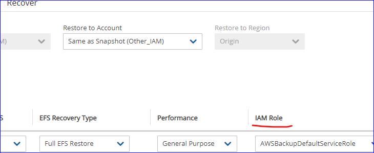 1. Identify the IAM Role name from the EFS Recovery screen: